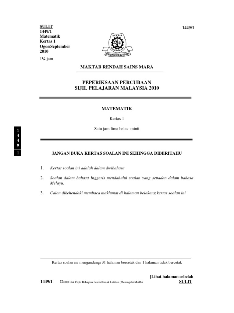 Sijil Pelajaran Malaysia In English / It is set and examined by the malaysian examinations syndicate.
