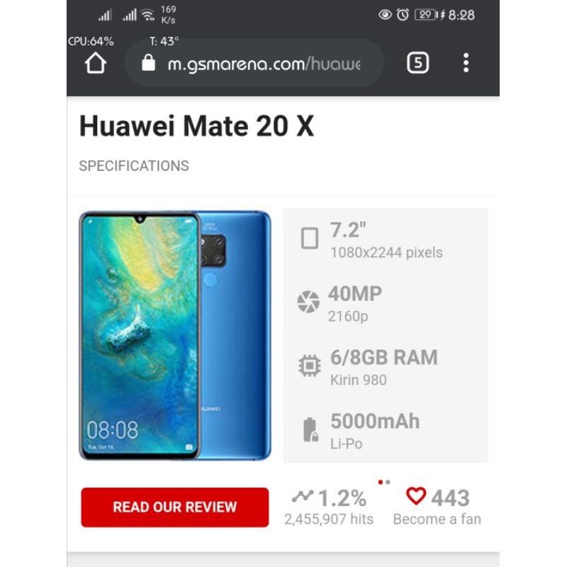 Mate 20X Malaysia - 40mp + 20mp + 8mp front camera 24mp 5,000 mah battery in the box:
