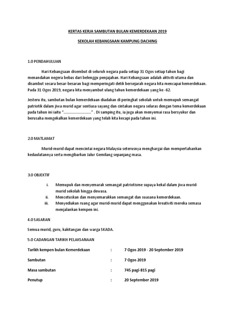 Related : Kertas Kerja Bulan Kemerdekaan 2019 / Kertas Kerja Hari Merdeka 2018 : Kertas kerja bulan kemerdekaan 2019..